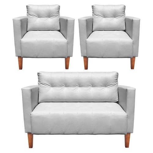 O Kit 01 Namoradeira e 02 Poltronas Lívia é para aqueles que buscam comodidade e sofisticação. Este kit promove um ótimo nível de conforto, graças ao seu design minimalista e aconchegante. Sem dúvidas ele dará aquele toque refinado que seu ambiente precisa! Uma dica legal é decorá-lo com almofadas de diferentes tons e estilos, que mais combinem com sua personalidade, criando um ambiente ainda mais incrível! Sua estrutura é produzida em madeira reflorestada e percintas elásticas. Possui preenchimento em espuma de excelente qualidade, densidade D-23 no assento e nos braços, no encosto de fibra siliconada e pés de madeira chanfrado Castanho. Com revestimento em Corino, um tecido fácil de limpar, que confere maior resistência, maciez e durabilidade à peça. Que tal levá-lo para sua casa ou escritório! Escolha seu Kit 01 Namoradeira e 02 Poltronas Lívia e dê vida ao seu ambiente com conforto e elegância.