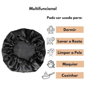 Kit 1 Touca Difusora + 1 Touca Cetim Seda Anti Frizz Preta Contém: 01 Touca 01 Touca Difusora Tecido: Cetim Seda / 100% Poliéster Cor: Preta