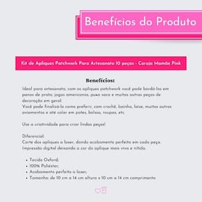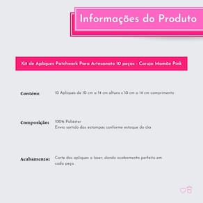 Kit de aplique aplicação patchwork para artesanato diy para bordar pano de prato com 10 peçasContém: 10 peças iguais coruja mamãe pink Obs: a embalagem contém 10 peça do mesmo desenho.Tamanho: de 10 a 14 cm altura x de 10 a 14 cm comprimentoComposição: 100% poliésterAs aplicações são feitas para costurar no tecido, não são colantes. O kit vem com 10 desenhos iguais é perfeito para você customizar seu kit de cozinha : Os apliques / aplicações são de fabricação própria e versáteis. Ideal para artesanato, você pode bordá-los em panos de prato, jogos americanos, puxa saco e outras peças de decoração em geral. Use a criatividade para criar lindas peçasDiferencial:Apliques grandes;Impressão digital deixando a cor do aplique mais viva e nítida;Corte dos apliques a laser, dando acabamento perfeito em cada peça. Marca: Autoestima Home