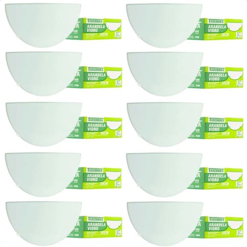 Kit 10 Arandelas Taschibra Jurerê Vidro Meia Lua E27 Bivolt Características Gerais do Produto: Dimensões AxLxP CM : 17 X 9 X 30 Formato: Meia Lua Produzido em: Aço e Vidro Voltagem: Bivolt em 110V e 220V Cor acabamento: Branco Potência máxima Por soquete : 40W Para uso em soquete: E27 Tradicional : 90 dias junto ao fabricante Aplicação: Parede Acompanha lâmpada: Não Sistema de aterramento: Não Acompanha o produto: 10 Arandela 10 Kit Instalação : 90 dias Marca: Não Informado