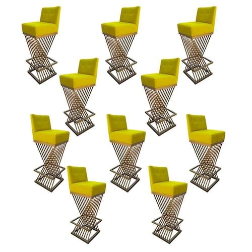 Contando com um design inovador nossa Banqueta possui um diferencial no desenho de sua Base de ferro, além de assento e encosto estofados.