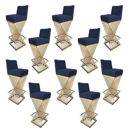 Contando com um design inovador nossa Banqueta possui um diferencial no desenho de sua Base de ferro, além de assento e encosto estofados.