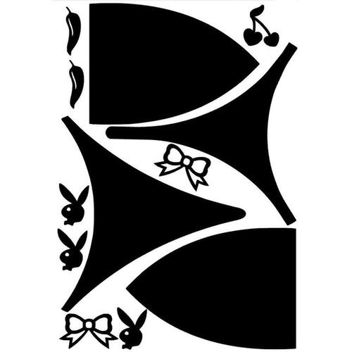 Cartelas com 10 conjuntos de biquíni completos + rolo de fita de 10 metros cortado em 0,8mm e 10mm + tatuagens solar.