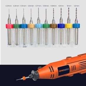 Kit 10 brocas tungstênio 0.3 a 1.2mm ultra finas haste 3mm para micro retificas dremax - marca: dremax - material: carboneto de tungstênio - diâmetro das hastes: 3mm - kit com 10 brocas: 0.3 - 0.4 - 0.5 - 0.6 - 0.7mm - 0.8 - 0.9 - 1.0 - 1.1 e 1.2mm - comprimento total: 38.1mm 1-1/2 - tamanho da embalagem: 8.6 x 5.2 x 1.0cm - adequado para processamento de pcb, smt, fr-4, placas cem-3, placa de circuito eletrônicos, cnc, moldes, plástico, fibra de carbono, placa composta, entre outras - peso: 35g - não aplicável a quebra das brocas. Por serem extremamente finas, deve- se ter cuidado ao furar, furando sempre em um ângulo de 90 graus. Uma inclinação durante o processo de perfuração, pode ocasionar quebra da mesma Marca: Não Informado