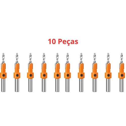 Kit 10 Brocas Escareadoras 3mm X 8mm haste lisa Kit 10 Broca Com Escareador Madeira 3mm x 8mm Madeira XF