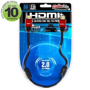 Kit 10 cabos hdmi 50cm 2.0 19 pinos ethernet 4k ultra hd 3d Obtenha mais qualidade de áudio e vídeo com o cabo hdmi versão 2.0, 19 pinos, 4k, ultra hd, 3dda cirilo cabos. Tenha resolução de cinema 21:9 e som em 32 canais. Tenha imagens e áudio livre de ruídos. Produto com qualidade e garantia cirilo cabos. Cabo hdmi 2.0 - 4k, ultra hd, 3d, 19 pinos Tenha o que há de melhor em tecnologia de som e imagem com os cabos hdmi 2.0 ultra hd 4k 3d. Esse cabo suporta a largura de banda de até 18gbps ideal para transmissão de sinal 3d e 4k com resolução de 3840x2160 em até 60 frames por segundo.Produto ideal para quem quer curtir o melhor dos seus aparelhos, seja para trabalho ou entretenimento. Características: Compatibilidade: 2.0 / 1.4 / 1.3b e todos os padrões hdmi anteriores Resolução de vídeo: 576i, 576b, 720i, 720p, 1080i, 1080p e 2160p - 4k60hz Velocidade de transmissão: alta taxa de transferência: 18 gbps à 600mhz Retorno de áudio permite transmitir o áudio sem a necessidade de passar um cabo à parte. Imagens: compatível com todos os formatos atuais de 3d. Proporção de cinema 21:9 Compatibilidade: O cabo hdmi 2.0 ultra hd 4k 3d já é compatível com todas as mídias existentes com saída hdmi. Modelos como hdtv, home theater, vídeo games, ps3, ps4, xbox, projetor, plasma, lcd, led, dvd, receiver box, telões, blue-ray, entre outros.