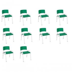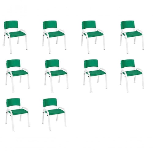 Kit 10 Cadeira Iso Infantil Creche, Escola Base Branco Verde Escuro