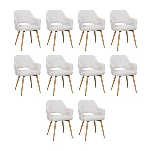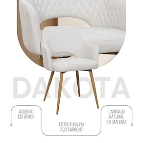 AS IMAGENS SÃO MERAMENTE ILUSTRATIVAS E PODEM SOFRER VARIAÇÕES DE COR E PEQUENOS DETALHES DE ACORDO COM O SEU MONITOR, ILUMINAÇÃO DO AMBIENTE E ATÉ MESMO A SUA PERCEPÇÃO 10 Cadeiras de Jantar Dakota Estrutura AÃo Carbono Laminado Natural com Estofado Linho Cru