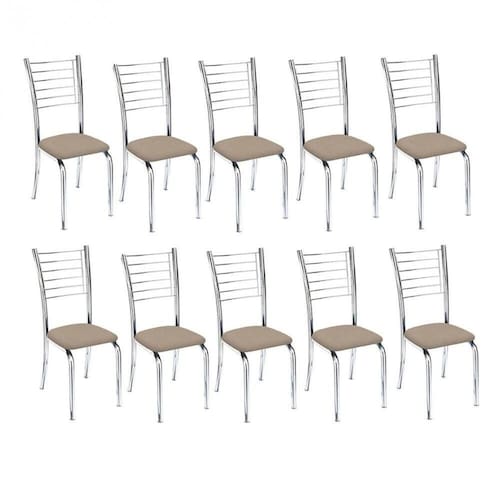 Kit 10 Cadeiras De Jantar Lara Cromada Para Cozinha Suede Bege - Aurora Line Cadeira Para Cozinha Lara - Aurora Line A Cadeira Lara é a opção ideal para sua casa. Se você está procurando por uma cadeira de jantar que seja perfeita para a sua cozinha, com estilo industrial, resistente e confortável, a Cadeira Lara é a escolha certa. Seja para casas, apartamentos ou áreas gourmet, essa cadeira vai se encaixar perfeitamente no seu espaço. Com um design moderno e elegante, a Cadeira Lara combina perfeitamente com diferentes estilos de decoração. Se você gosta de um ambiente mais industrial, essa cadeira vai trazer um toque de personalidade para a sua casa. Além disso, ela também é versátil o suficiente para se adaptar a outros estilos, como o contemporâneo ou o rústico.Além do design, a Cadeira Lara também se destaca pela sua resistência. Feita com materiais de alta qualidade, ela é capaz de suportar o uso diário sem perder a sua durabilidade. Se você tem uma família grande ou adora receber amigos para jantar, essa cadeira é perfeita para você. Ela vai garantir conforto e segurança para todos.Outro ponto importante da Cadeira Lara é o seu conforto. Com um assento acolchoado e encosto ergonômico, essa cadeira proporciona uma experiência agradável durante as refeições. Você vai poder desfrutar de momentos de descontração e prazer à mesa, seja para um jantar em família ou um encontro com amigos.