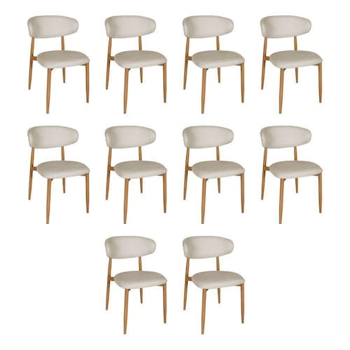 AS IMAGENS SÃO MERAMENTE ILUSTRATIVAS E PODEM SOFRER VARIAÇÕES DE COR E PEQUENOS DETALHES DE ACORDO COM O SEU MONITOR, ILUMINAÇÃO DO AMBIENTE E ATÉ MESMO A SUA PERCEPÇÃO 10 Cadeiras de Jantar Lucy Estrutura AÃo Carbono Laminado Natural com Estofado Linho Cru