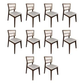 KIT 10 CADEIRAS DE JANTAR MANUELA EM TELA ASSENTO VELUDO BEGE BASE EM MADEIRA MACIÇA - NATURAL