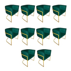Kit 10 Cadeiras de Jantar Premium Base de Ferro Dourada Veludo Verde