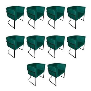 AS IMAGENS SÃO MERAMENTE ILUSTRATIVAS E PODEM SOFRER VARIAÇÕES DE COR E PEQUENOS DETALHES DE ACORDO COM O SEU MONITOR, ILUMINAÇÃO DO AMBIENTE E ATÉ MESMO A SUA PERCEPÇÃO VISUAL.Kit 10 Cadeiras De Jantar Premium Base De Ferro Preta Veludo Verde