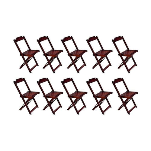 Kit 10 Cadeiras De Madeira Dobravel Imbuia - Marrom