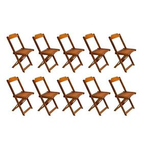 Kit 10 Cadeiras De Madeira Dobravel Mel - Cor: Amarelo