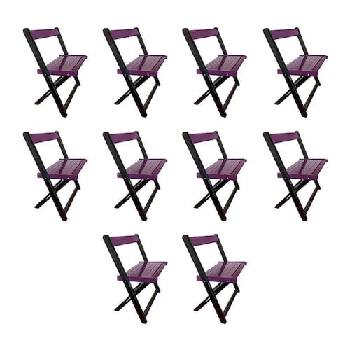 AS IMAGENS SÃO MERAMENTE ILUSTRATIVAS E PODEM SOFRER VARIAÇÕES DE COR E PEQUENOS DETALHES DE ACORDO COM O SEU MONITOR, ILUMINAÇÃO DO AMBIENTE E ATÉ MESMO A SUA PERCEPÇÃO VISUAL.Kit 10 Cadeiras de Madeira DobrÃvel Roxo