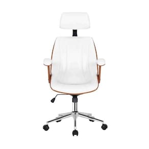 A cadeira Kopenhagen Presidente é toda revestida em couro ecológico e possui sua estrutura em madeira, o que a torna ótima por conta de seu design para salas de reuniões e presidência. Ela também possui o mecanismo relax, o que irá manter quem estiver sentado nela mais confortável, o que unido a seu encosto de cabeça é ainda mais confortável, além de ser possível ajustar a altura do assento! Altura do Conjunto: 124 cm Ambiente: null Ambiente Principal: Escritório Cor: Branco Informação Complementar: 10x Cadeira Escritório Presidente Giratória Kopenhagen com Apoia Cabeça Branco/Marrom Largura: 61 cm Altura: 124 cm Peso: 16,5 kg Profundidade: 63 cm Necessita Montagem: Sim