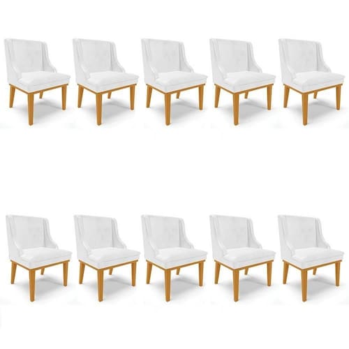 Requinte e sofisticação para sua Sala de Jantar, é exatamente para oferecer esses benefícios que apresentamos o Kit 10 Cadeiras Estofadas Base Fixa de Madeira Castanho Lia Sintético Premium Branco, da Ibiza, confira os detalhes!