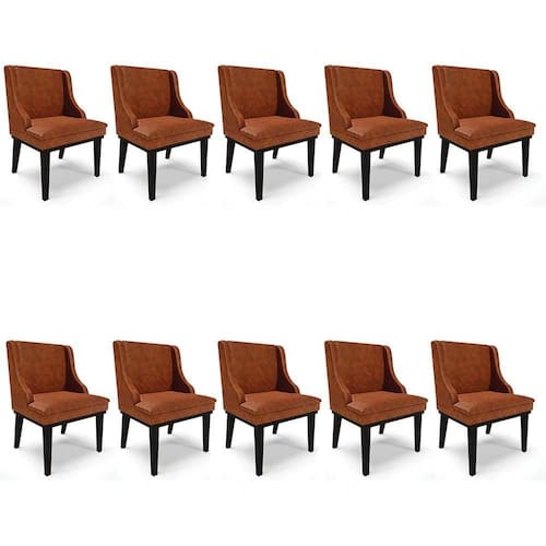Se você procura por conforto e beleza para sua Sala de Jantar, confira o Kit 10 Cadeiras Estofadas Base Fixa de Madeira Preto Lia Sintético Premium Nozes, da Ibiza e surpreenda-se!