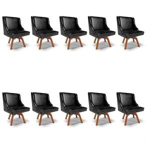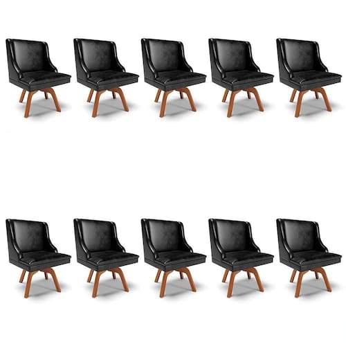 Quer dar um toque de sofisticação na sua casa sem abrir mão da qualidade? Vem conhecer o Kit 10 Cadeiras Estofadas Base Giratória de Madeira Lia Sintético Premium Preto, da Ibiza e surpreenda-se!