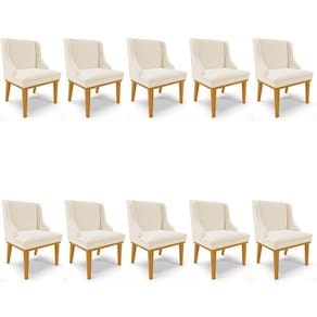 Mais que do que um simples móvel, a cadeira estofada é um artigo decorativo tão importante quanto a mesa de jantar, pois, ela agrega beleza na decoração e chama a atenção de quem vê, por isso, apresentamos o Kit 10 Cadeiras Lia que foi projetado com um design exclusivo que facilita combiná-las com os outros móveis, deixando sua sala de jantar perfeita para você aproveitar. As cadeiras são produzidas com materiais de alta qualidade, para que não se preocupe em desfrutar de bons momentos durante as refeições com sua família e amigos. Essa cadeira de jantar possui estrutura em Madeira Eucalipto de reflorestamento, ecologicamente correta e a base fixa de madeira suporta até 120 kg, sem impacto. A parte estofada é composta por espuma macia com densidade D-23 e o revestimento é em Linho, que para alguns é a representatividade da nobreza! Esse tecido é versátil, durável, macio, conta com propriedades térmicas, antialérgicas e é de fácil limpeza.