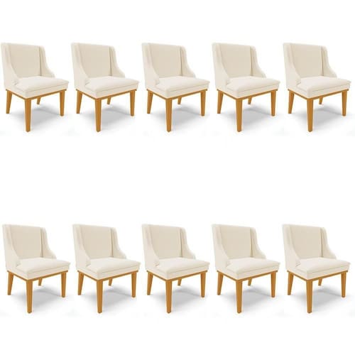 Que tal, unir conforto e beleza e deixar a sua casa mais bonita? Vem conhecer o Kit 10 Cadeiras Estofadas para Sala de Jantar Base Fixa de Madeira Castanho Lia Linho Bege, que a Ibiza preparou especialmente para você!