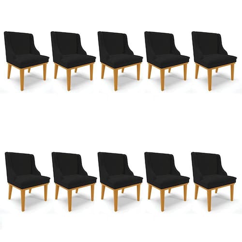 Que tal, unir conforto e beleza e deixar a sua casa mais bonita? Vem conhecer o Kit 10 Cadeiras Estofadas para Sala de Jantar Base Fixa de Madeira Castanho Lia Linho Preto, que a Ibiza preparou especialmente para você!