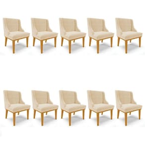 Para quem procura conforto, qualidade e elegância, o Kit 10 Cadeiras Estofadas para Sala de Jantar Base Fixa de Madeira Castanho Lia Suede Bege, da Ibiza, é a escolha certeira!