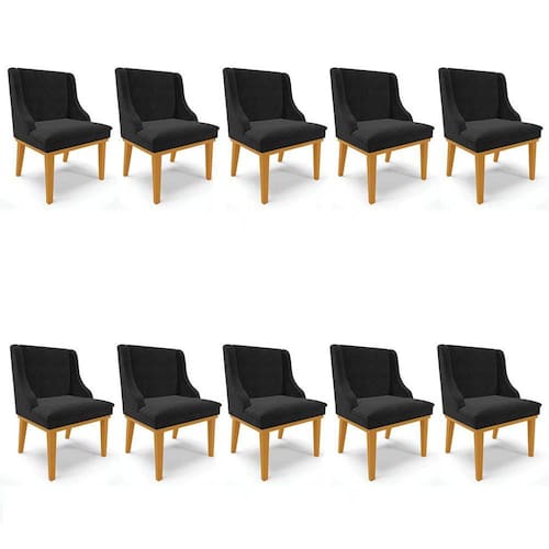 Para quem procura conforto, qualidade e elegância, o Kit 10 Cadeiras Estofadas para Sala de Jantar Base Fixa de Madeira Castanho Lia Suede Preto, da Ibiza, é a escolha certeira!