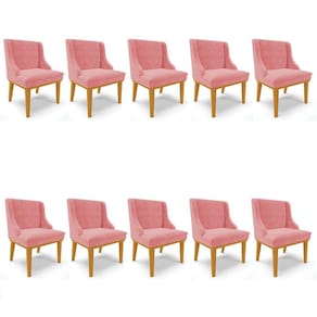 Para quem procura conforto, qualidade e elegância, o Kit 10 Cadeiras Estofadas para Sala de Jantar Base Fixa de Madeira Castanho Lia Suede Rosê, da Ibiza, é a escolha certeira!