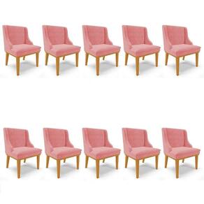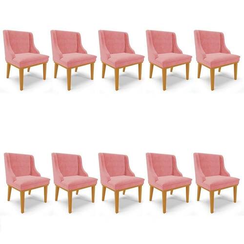 Para quem procura conforto, qualidade e elegância, o Kit 10 Cadeiras Estofadas para Sala de Jantar Base Fixa de Madeira Castanho Lia Suede Rosê, da Ibiza, é a escolha certeira!