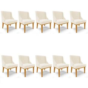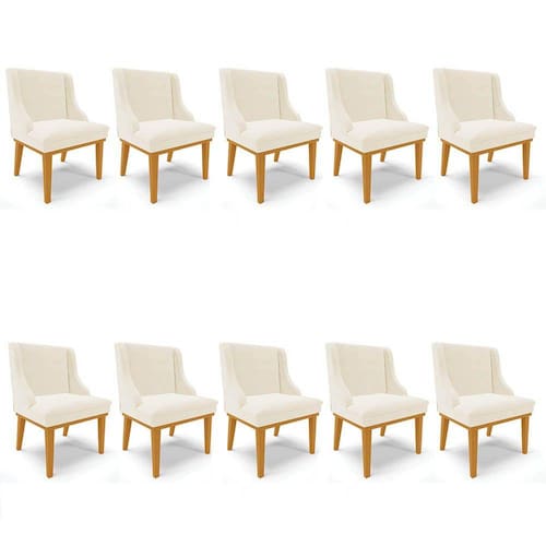 Para quem busca conforto, beleza e qualidade, vem conhecer o Kit 10 Cadeiras Estofadas para Sala de Jantar Base Fixa de Madeira Castanho Lia Veludo Bege, da Ibiza!