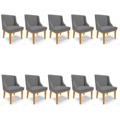 Para quem busca conforto, beleza e qualidade, vem conhecer o Kit 10 Cadeiras Estofadas para Sala de Jantar Base Fixa de Madeira Castanho Lia Veludo Grafite, da Ibiza!