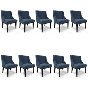 Procurando móveis confortáveis e resistentes? Conheça o Kit 10 Cadeiras Estofadas para Sala de Jantar Base Fixa de Madeira Preto Lia Suede Azul Marinho, da Ibiza!
