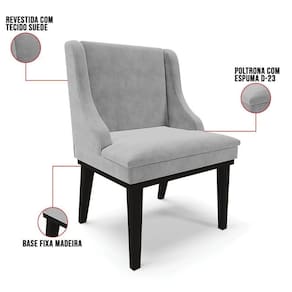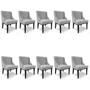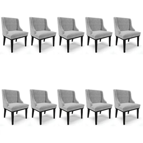 Procurando móveis confortáveis e resistentes? Conheça o Kit 10 Cadeiras Estofadas para Sala de Jantar Base Fixa de Madeira Preto Lia Suede Cinza, da Ibiza!