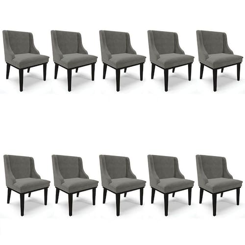 Procurando móveis confortáveis e resistentes? Conheça o Kit 10 Cadeiras Estofadas para Sala de Jantar Base Fixa de Madeira Preto Lia Suede Grafite, da Ibiza!