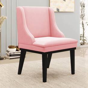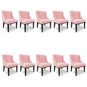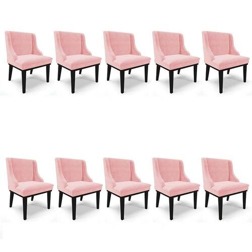 Procurando móveis confortáveis e resistentes? Conheça o Kit 10 Cadeiras Estofadas para Sala de Jantar Base Fixa de Madeira Preto Lia Suede Rosa bebê, da Ibiza!