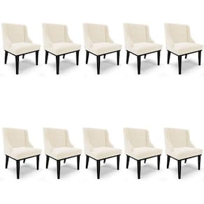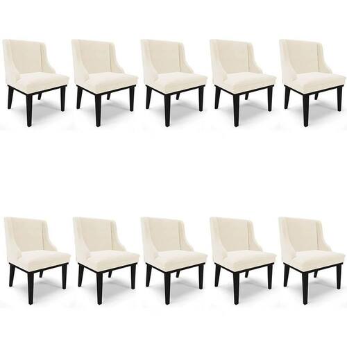 Se você gosta de ter a mesa sempre cheia o Kit 10 Cadeiras Estofadas para Sala de Jantar Base Fixa de Madeira Preto Lia Veludo Bege, da Ibiza é perfeito para você, confira!