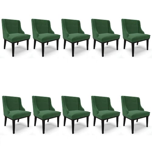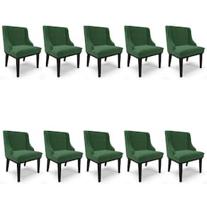 Se você gosta de ter a mesa sempre cheia o Kit 10 Cadeiras Estofadas para Sala de Jantar Base Fixa de Madeira Preto Lia Veludo Verde, da Ibiza é perfeito para você, confira!