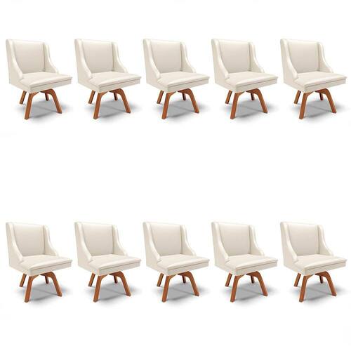 O Kit 10 Cadeiras Estofadas para Sala de Jantar Base Giratória de Madeira Lia Sintético Bege, da Ibiza é perfeito para acomodar a família toda, confira!