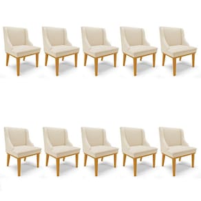 Com o Kit 10 Cadeiras Estofadas Sala de Jantar Base Fixa de Madeira Castanho Lia Sintético Bege, da Ibiza, você tem beleza e conforto, sem abrir mão da qualidade! Confira os detalhes!
