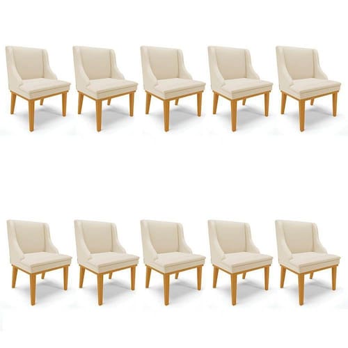 Com o Kit 10 Cadeiras Estofadas Sala de Jantar Base Fixa de Madeira Castanho Lia Sintético Bege, da Ibiza, você tem beleza e conforto, sem abrir mão da qualidade! Confira os detalhes!