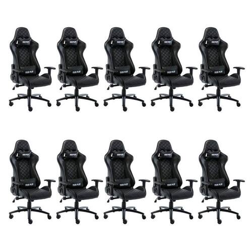 A cadeira Gamer que você precisa! A Gamer Fair Play é toda em couro ecológico com sua base em aço. Ela possui o sistema relax e seu encosto inclina até 180° ficando totalmente deitada, o que torna ela ainda mais confortável. Além de possuir regulagem da altura do braço, para que se adeque a qualquer mesa que for encostada. Altura do Conjunto: 136 cm Ambiente: null Ambiente Principal: Escritório Cor: Preto Cor do Produto: Preto Informação Complementar: 10x Cadeira Gamer Giratória Fair Play Fratini Preto Largura: 55 cm Altura: 136 cm Peso: 15,69 kg Profundidade: 55 cm Necessita Montagem: Sim