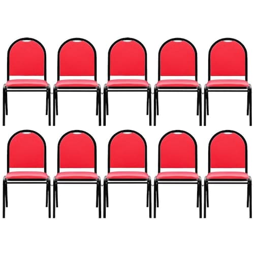 Todo evento precisa de cadeiras confortáveis, funcionais e que padronizem o ambiente, pensando nisso, a Mpozenato apresenta o Kit 10 Cadeiras Hoteleiras Auditório Empilhável Sintético M23 Vermelho, confira os detalhes!