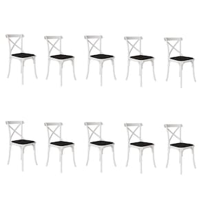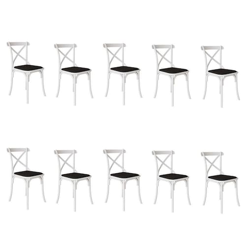 AS IMAGENS SÃO MERAMENTE ILUSTRATIVAS E PODEM SOFRER VARIAÇÕES DE COR E PEQUENOS DETALHES DE ACORDO COM O SEU MONITOR, ILUMINAÇÃO DO AMBIENTE E ATÉ MESMO A SUA PERCEPÇÃO VISUAL.Kit 10 Cadeiras Katrina Assento Corano Preto AÃo Branco