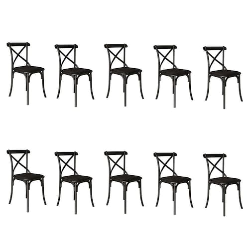 Kit 10 Cadeiras Katrina Assento Corano Preto Aço Preto