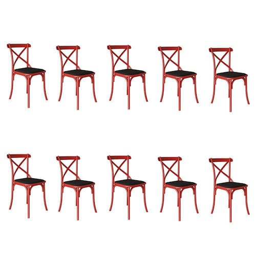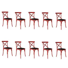 Kit 10 Cadeiras Katrina Assento Corano Preto Aço Vermelho