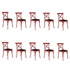 Kit 10 Cadeiras Katrina Assento Corano Preto Aço Vermelho