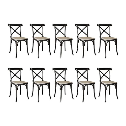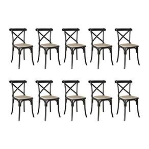 Kit 10 Cadeiras Katrina Preta Assento Corano Bege Aço Asturias - Cor: Bege - Preto
