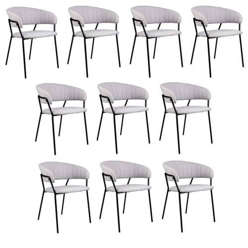 CONJUNTO COM 10 UNIDADES. Altura do Conjunto: 78 cm Ambiente: null Ambiente Principal: Sala de Jantar codigo_ean: 7900288197597 Cor: Cinza Cor do Produto: Cinza Informação Complementar: 10x Cadeira Sala de Jantar Mara com Braços Estofada Base em Aço Linho Cinza Largura: 57 cm Altura: 78 cm Peso: 6,8 kg Profundidade: 53,5 cm Necessita Montagem: Sim